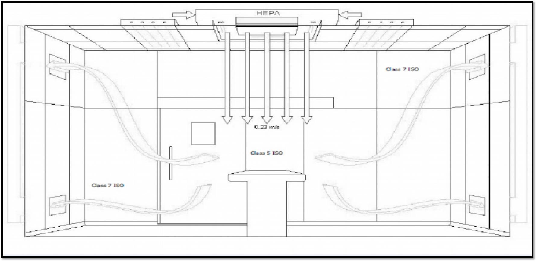 Air Outlet Velocity: 90 to 100 FPM Laminar flow